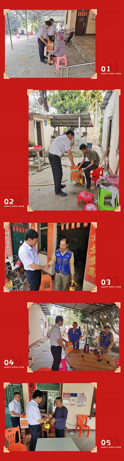 新春佳節(jié)將至,2月8日上午,三亞環(huán)投集團(tuán)董事長袁文革、總經(jīng)理張秀標(biāo)到育才生態(tài)區(qū)龍密村委會黑嶺腳小組、那介小組及卡巴三小組慰問我司對口幫扶貧困戶,為他們送上了春節(jié)的祝福和食用油、大米等生活必需品,向他們傳達(dá)了公司對幫扶貧困戶的關(guān)懷和問候。