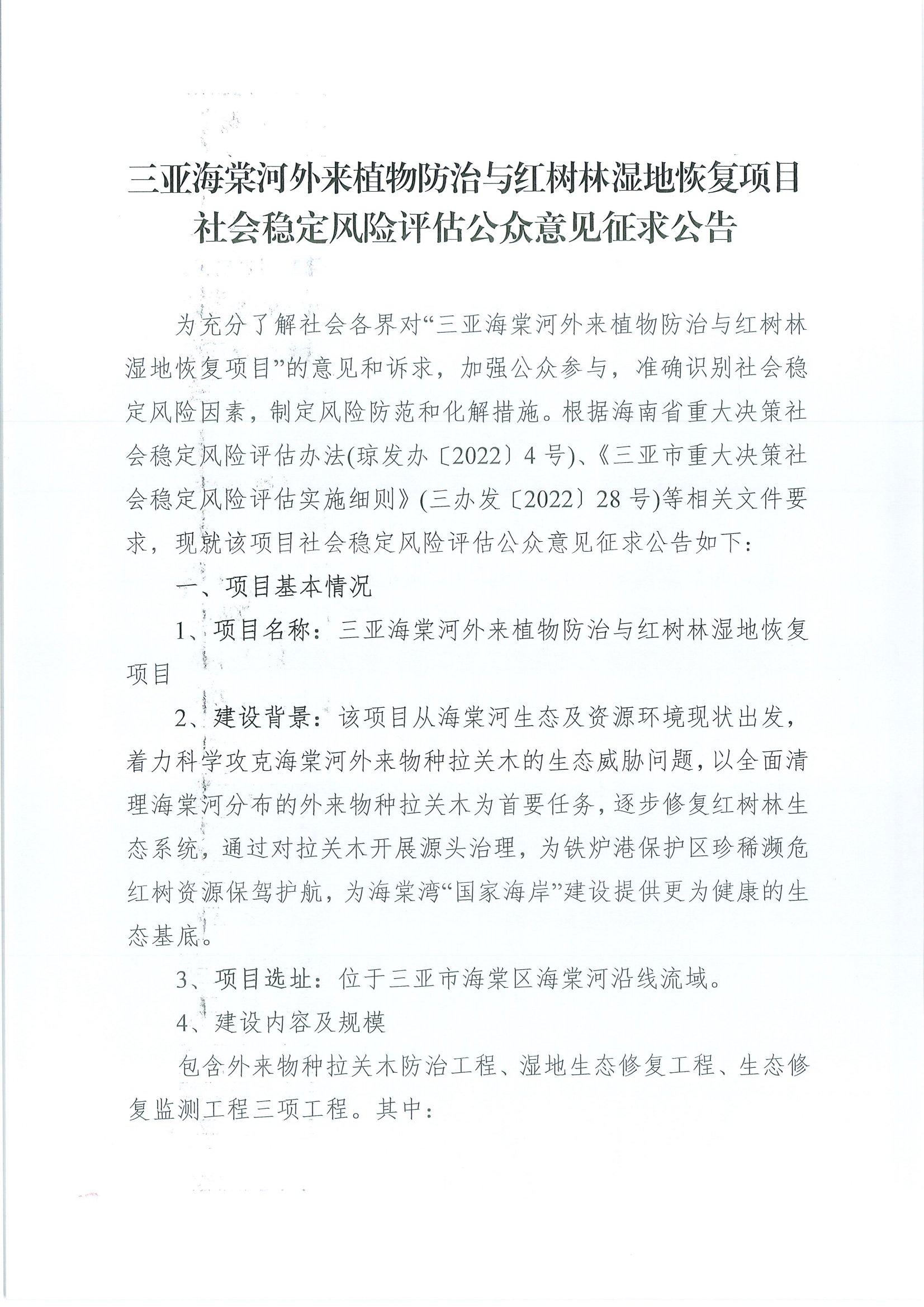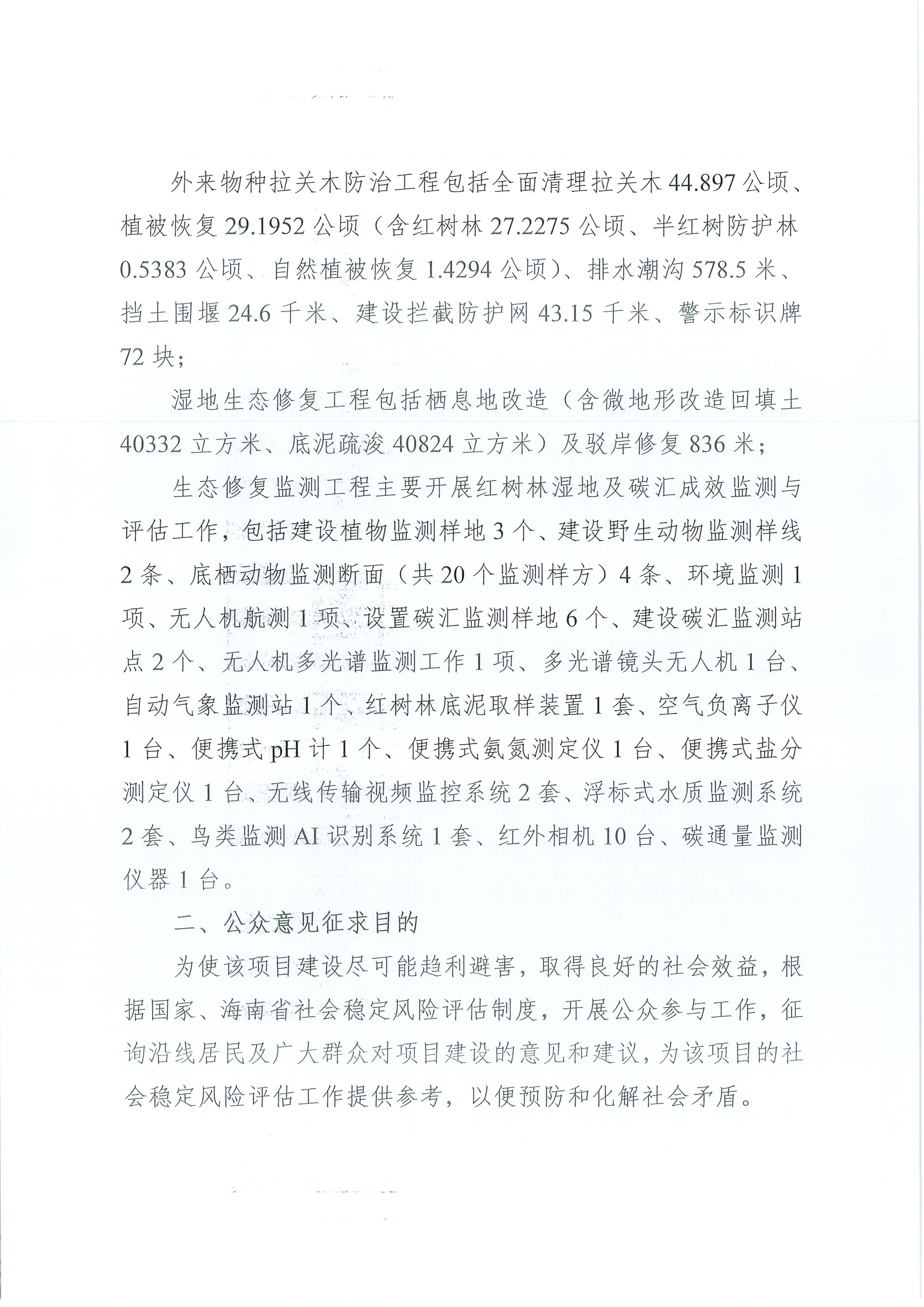 海棠河外來植物防治與紅樹林濕地恢復項目公眾意見征求公示公告