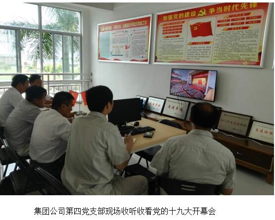 2017年10月18日上午9時,海南天涯水業(yè)(集團)公司黨委書記袁文革帶領(lǐng)集團公司第一、二、三黨支部30名在崗黨員在集團公司四樓總調(diào)度中心收聽收看中國共產(chǎn)黨第十九次全國代表大會開幕會,集團公司第四支部6名在崗黨員、第五支部11名在崗黨員分別在東部公司播放點和西部公司播放點集中觀看,合作公司第一至四黨支部35名在崗黨員在中法公司二樓黨員活動中心集中觀看,其他四個支部共61名在崗黨員在荔枝溝水廠和青田水廠播放點集中觀看。海南天涯水業(yè)(集團)公司黨委共有13個黨支部,實到143名黨員干部現(xiàn)場收看黨的十九大開幕會。